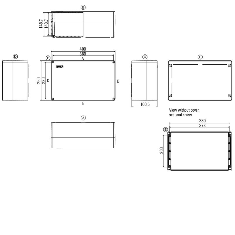 Klippon TB FS (Terminal Box - Fixing Screw), Leergehäuse, Edelstahlgehäuse, Höhe: 229 mm, Breite: 152 mm, Tiefe: 133 mm, Flanschplatten: unten, Werkstoff: Edelstahl 1.4404 (316 L), elektropoliert, silber