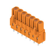 PCB plug-in connector, female header, Dovetails for fixing blocks, THT solder connection, 5.08 mm, Number of poles: 7, 180°, Solder pin length (l): 3.2 mm, tinned, orange, Box