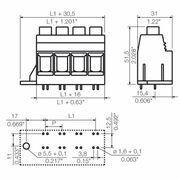 Printed circuit board terminals, 15.00 mm, Number of poles: 4, 90°, Solder pin length (l): 4.5 mm, tinned, black, Clamping yoke connection, Clamping range, max. : 50 mm², Box