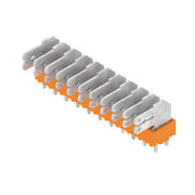 Printed circuit board terminals, 5.00 mm, Number of poles: 11, 90°, Solder pin length (l): 3.5 mm, tinned, orange, Flat-blade connection, Box