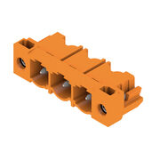 PCB plug-in connector, male header, Solder flange, THT solder connection, 7.62 mm, Number of poles: 3, 90°, Solder pin length (l): 3.2 mm, tinned, orange, Box