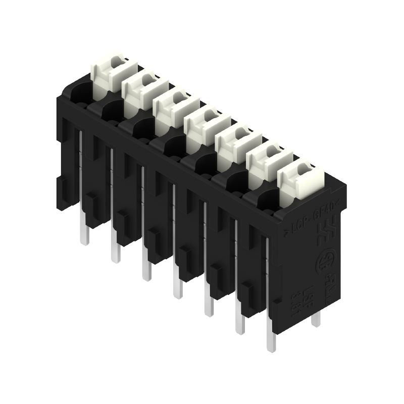 Bornes para circuito impreso, 3.81 mm, Número de polos: 7, 180°, Longitud del terminal de soldadura (l): 3.5 mm, negro, PUSH IN con actuador, Sección de embornado, máx. : 1.5 mm², Tube