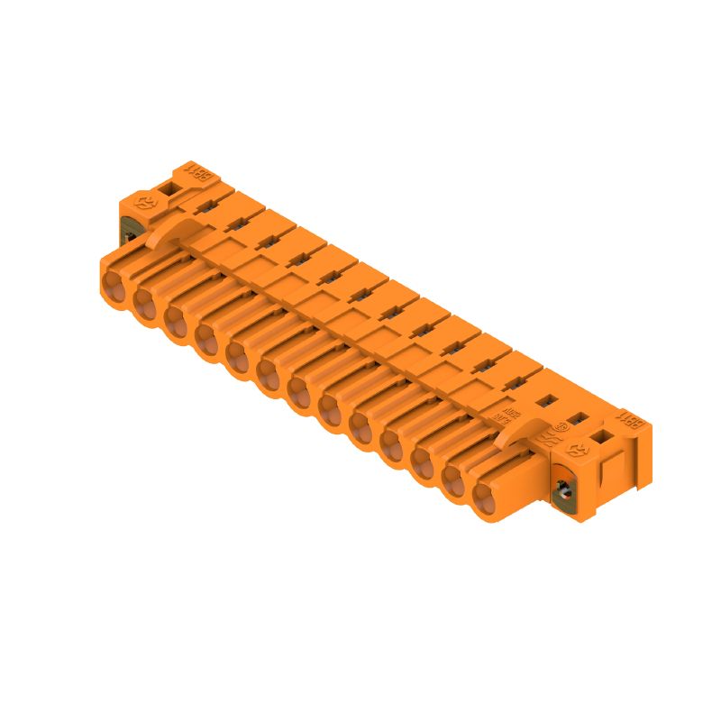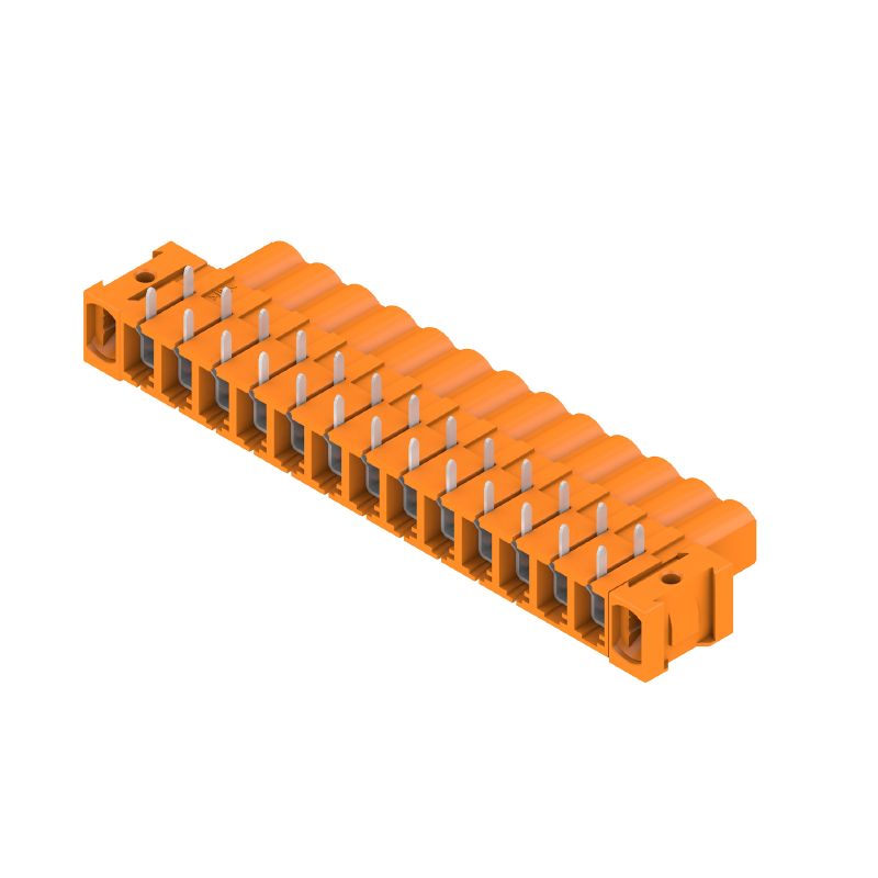 Connecteur pour circuit imprimé, Connecteur femelle, Bride inversée, Raccordement soudé THT, 5.08 mm, Nombre de pôles: 13, 90°, Longueur du picot à souder (l): 3.2 mm, étamé, Orange, Boîte