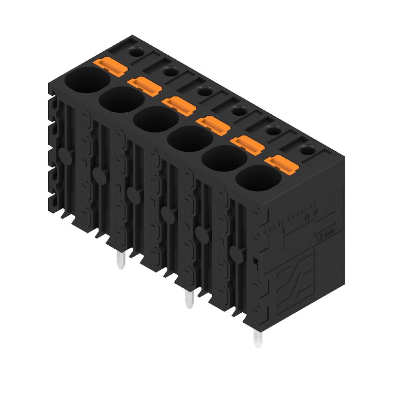 Bloc de jonction pour circuit imprimé, 7.50 mm, Nombre de pôles: 6, 180°, Longueur du picot à souder (l): 5 mm, étamé, noir, PUSH IN sans actionneur, Plage de serrage, max. : 6 mm², Boîte