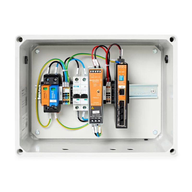 Photovoltaïque, Boîtier confectionné, Module de communication, 230 V AC, Protection contre la foudre et la surtension I, Protection surtension de type 2, basse tension, Composants de contrôle, Surveillance de tension, Surveillance de seuil, Boîtier de communication, RJ45