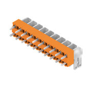 Printed circuit board terminals, 5.00 mm, Number of poles: 10, 90°, Solder pin length (l): 3.5 mm, tinned, orange, Flat-blade connection, Box