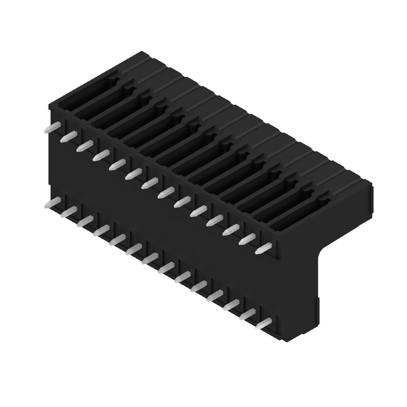 Złącze wtykowe do druku, Listwa męska, zamknięte z boku, Połączenie lutowane THT/THR, 3.81 mm, Liczba biegunów: 28, 180°, Długość kołka lutowniczego (l): 3.2 mm, cynowana, czarny, skrzynia