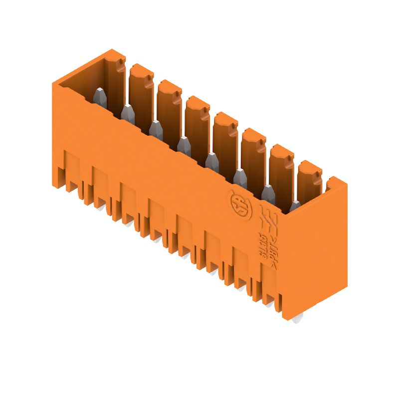 Złącze wtykowe do druku, Listwa męska, zamknięte z boku, Połączenie lutowane THR, 3.50 mm, Liczba biegunów: 8, 180°, Długość kołka lutowniczego (l): 3.2 mm, cynowana, pomarańczowy, skrzynia
